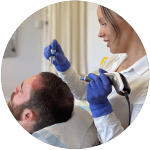 The PRP is then applied to selected areas of the scalp using fine injections. These areas are chosen based on your pattern of thinning and clinical assessment.